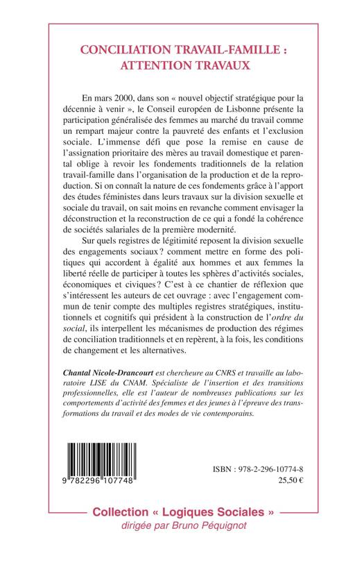 En mars 2000, le Conseil européen de Lisbonne présente la participation généralisée des femmes au marché du travail comme un rempart majeur contre la pauvreté des enfants et l'exclusion sociale. Sur quels registres de légitimité reposent la division sexuelle des engagements sociaux ? Comment mettre en forme des politiques qui accordent à égalité aux hommes et aux femmes la liberté réelle de participer à toutes les sphères d'activités sociales économiques et civiques ? C'est à ce chantier que s'intéresse cette réflexion.