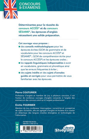 • des conseils méthodologiques pour les épreuves écrites (QCM de grammaire et de vocabulaire pour les concours ACCÈS et SÉSAME ; QCM de compréhension écrite pour le concours ACCÈS) et les épreuves orales ;