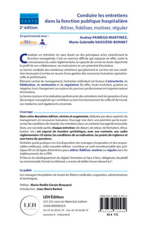 L’ouvrage Élaboré par deux expertes du management en ressources humaines, cet ouvrage vise dans une première partie à présenter les conditions de réussite des entretiens dans un contexte managérial renouvelé. Dans une seconde partie, l’ouvrage expose pour chaque entretien (de départ, de retour, de formation, d’évaluation, etc.) le contexte, le cadre réglementaire s’il existe, les conditions de réalisation, les points de vigilance et une trame de questions. Véritable guide pratique mis à la disposition des managers hospitaliers et des responsables médicaux, cet ouvrage deviendra un outil incontournable pour la mise en œuvre des politiques RH pour attirer, fidéliser, motiver ou réguler dans les établissements de la FPH. À l’heure du développement du digital, l’entretien en face à face, obligatoire, facultatif ou recommandé, formel ou informel, a encore de belles heures devant lui !
