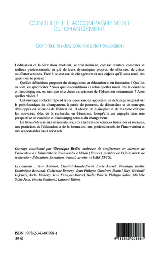 Quelles définitions proposer du changement en éducation et en formation ? Quelles en sont les spécificités ? Sous quelles conditions et selon quelles modalités le conduire et l'accompagner, en tant que chercheur en sciences de l'éducation notamment ? Avec quelles visées ? Voici abordé de plain-pied les nouveaux rôles de la recherche en éducation, lorsqu'elle est engagée dans une perspective de conduite et d'accompagnement.