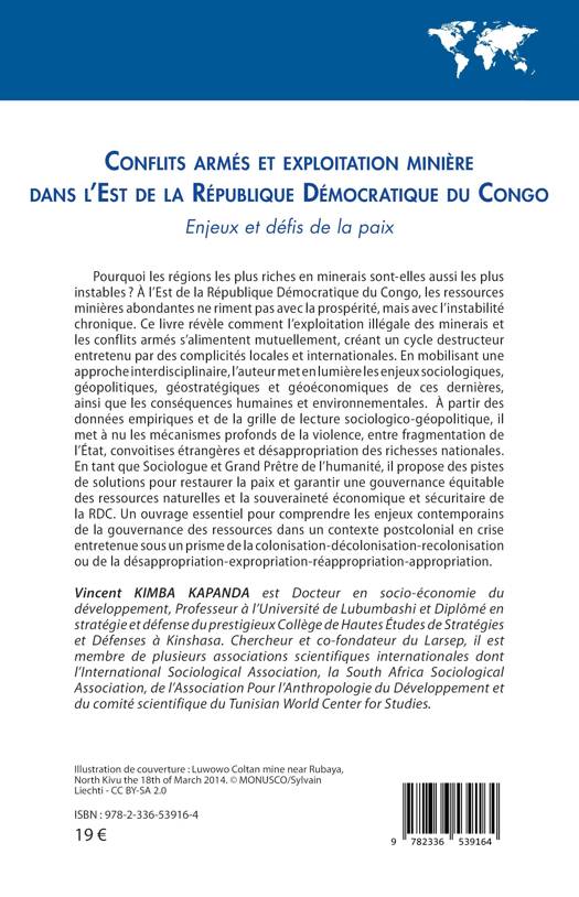 Pourquoi les régions les plus riches en minerais sont-elles aussi les plus instables ? À l'Est de la République Démocratique du Congo, les ressources minières abondantes ne riment pas avec la prospérité, mais avec l'instabilité chronique. Ce livre révèle comment l'exploitation illégale des minerais et les conflits armés s'alimentent mutuellement, créant un cycle destructeur entretenu par des complicités locales et internationales. En mobilisant une approche interdisciplinaire, l'auteur met en lumière les enjeux sociologiques, géopolitiques, géostratégiques et géoéconomiques de ces dernières, ainsi que les conséquences humaines et environnementales. À partir des données empiriques et de la grille de lecture sociologico-géopolitique, il met à nu les mécanismes profonds de la violence, entre fragmentation de l'État, convoitises étrangères et désappropriation des richesses nationales. En tant que Sociologue et Grand Prêtre de l'humanité, il propose des pistes de solutions pour restaurer la paix et garantir une gouvernance équitable des ressources naturelles et la souveraineté économique et sécuritaire de la RDC. Un ouvrage essentiel pour comprendre les enjeux contemporains de la gouvernance des ressources dans un contexte postcolonial en crise entretenue sous un prisme de la colonisation-décolonisation-recolonisation ou de la désappropriation expropriation-réappropriation-appropriation.