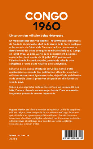 En mobilisant des archives inédites - notamment les documents de Frédéric Vanderwalle, chef de la sûreté de la Force publique, et les carnets du Général de Cumont - ce livre recompose le déroulement des actes politiques et militaires belges au Congo, en juillet 1960. La découverte ou le déclassement de pièces essentielles, dont la note du 12 juillet 1960 préconisant l'élimination de Patrice Lumumba, permet de relire la crise congolaise à l'aune d'une nouvelle grille analytique.