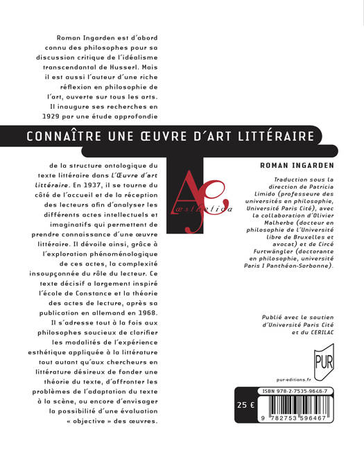 Roman Ingarden est d’abord connu des philosophes pour sa discussion critique de l’idéalisme transcendantal de Husserl. Mais il est aussi l’auteur d’une richeréflexion en philosophie de l’art, ouverte sur tous les arts. Il inaugure ses recherches en 1929 par une étude approfondie de la structure ontologique du texte littéraire dans L’OEuvre d’art littéraire. En 1937, il se tourne du côté de l’accueil et de la réception des lecteurs afin d’analyser les différents actes intellectuels et imaginatifs qui permettent de prendre connaissance d’une oeuvre littéraire. Il dévoile ainsi, grâce à l’exploration phénoménologique de ces actes, la complexité insoupçonnée du rôle du lecteur. Ce texte décisif a largement inspiré l’école de Constance et la théorie des actes de lecture, après sa publication en allemand en 1968. Il s’adresse tout à la fois aux philosophes soucieux de clarifier les modalités de l’expérience esthétique appliquée à la littérature tout autant qu’aux chercheurs en littérature désireux de fonder une théorie du texte, d’affronter les problèmes de l’adaptation du texte à la scène, ou encore d’envisager la possibilité d’une évaluation « objective » des oeuvres.
