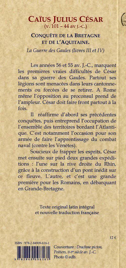 La Guerre des Gaules, livres 3 et 4. Texte original latin et traduction française. Index onomastique. Présentation et traduction : Nathalie Desgrugillers.