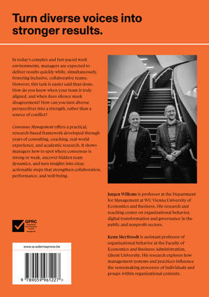 In today's complex and fast-paced work environments, managers are expected to deliver results quickly while, simultaneously, fostering inclusive, collaborative teams. However, this task is easier said than done. How do you know when your team is truly aligned, and when does silence mask disagreement? How can you turn diverse perspectives into a strength, rather than a source of conflict? Consensus Management offers a practical, research-based framework developed through years of consulting, coaching, real-world experience, and academic research. It shows managers how to spot where consensus is strong or weak, uncover hidden team dynamics, and turn insights into clear, actionable steps that strengthen collaboration, performance, and well-being.