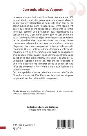 Le consentement fait question dans nos sociétés : nous avons changé de registre de valorisation et de justification sur la scène publique et dans l'espace privé. Nous avons également tendance à considérer la forme juridique comme une protection aux incertitudes du consentement. Enfin, le consentement passif ou implicite est l'objet de controverses en raison de la pluralité des interprétations. Nous consentons néanmoins et nous ne saurions nous en dispenser. Nous nous opposons parfois et refusons de consentir. Nous sommes confrontés à la question la plus élémentaire ; un « pourquoi ? ». Consentir suppose d'être en mesure de répondre, d'ignorer la question ou de la dépasser.