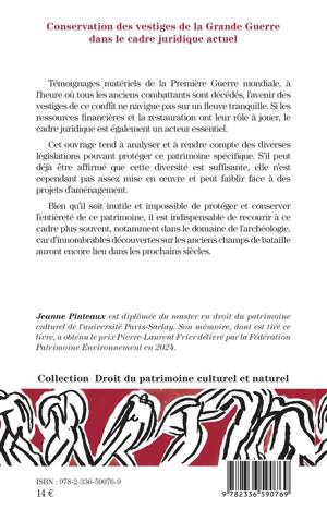 Témoignages matériels de la Première Guerre mondiale, à l'heure où tous les anciens combattants sont décédés, l'avenir des vestiges de ce conflit ne navigue pas sur un fleuve tranquille. Si les ressources financières et la restauration ont leur rôle à jouer, le cadre juridique est également un acteur essentiel. Cet ouvrage tend à analyser et à rendre compte des diverses législations pouvant protéger ce patrimoine spécifique. S'il peut déjà être affirmé que cette diversité est suffisante, elle n'est cependant pas assez mise en oeuvre et peut faiblir face à des projets d'aménagement. Bien qu'il soit inutile et impossible de protéger et conserver l'entièreté de ce patrimoine, il est indispensable de recourir à ce cadre plus souvent, notamment dans le domaine de l'archéologie, car d'innombrables découvertes sur les anciens champs de bataille auront encore lieu dans les prochains siècles.