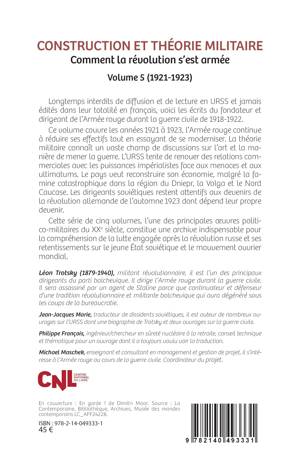 Longtemps interdits de diffusion et de lecture en URSS et jamais édités dans leur totalité en français, voici les écrits du fondateur et dirigeant de l'Armée rouge durant la guerre civile de 1918-1922. Ce volume couvre les années 1921 à 1923, l'Armée rouge continue à réduire ses effectifs tout en essayant de se moderniser. La théorie militaire connaît un vaste champ de discussions sur l'art et la manière de mener la guerre. L'URSS tente de renouer des relations commerciales avec les puissances impérialistes face aux menaces et aux ultimatums. Le pays veut reconstruire son économie, malgré la famine catastrophique dans la région du Dniepr, la Volga et le Nord Caucase. Les dirigeants soviétiques restent attentifs aux devenirs de la révolution allemande de l'automne 1923 dont dépend leur propre devenir. Cette série de cinq volumes, l'une des principales oeuvres politico-militaires du XXe siècle, constitue une archive indispensable pour la compréhension de la lutte engagée après la révolution russe et ses retentissements sur le jeune État soviétique et le mouvement ouvrier mondial.