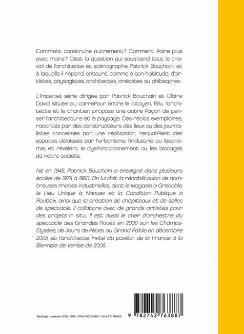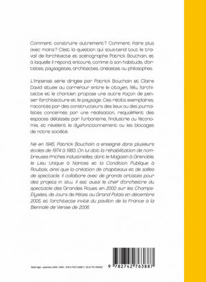 Comment construire autrement? Comment faire plus avec moins? C'est la question qui sous-tend tout le travail de l'architecte et scénographe Patrick Bouchain, et à laquelle il répond, entouré, comme à son habitude, d'artistes, paysagistes, architectes, cinéastes ou philosophes.
