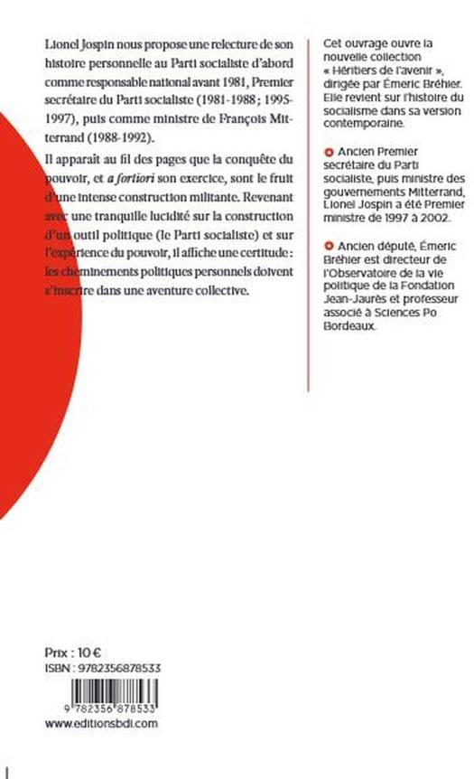 Lionel Jospin nous propose une relecture de son histoire personnelle au Parti socialiste, de son expérience du pouvoirâ€- d'abord comme Premier secrétaire du Parti socialiste (1981-1988 ; 1995-1997), puis comme ministre de François Mitterrand (1988-1992) et enfin comme Premier ministre (1995-2002). Ouvrage de mémoire et de projection, apparaît au fil des pages que la conquête du pouvoir, et a fortiori son exercice, ne peuvent être que le fruit d'une intense construction militante. Revenant avec une tranquille lucidité sur le bilan des gouvernements socialistes de la fin du siècle, ceux de la présidence Mitterrand comme le sien, Lionel Jospin revendique les succès, y compris lorsqu'ils sont toujours débattus comme l'instauration du quinquennat, et assume les erreurs politiques sans voiler les faux-pas moraux.