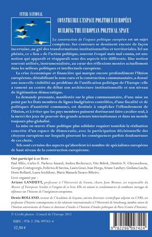 La construction de l'espace européen est un sujet complexe. La crise économique et financière a ramené au coeur du débat l'architecture institutionnelle de l'Europe et son niveau de légitimation démocratique. La mise en oeuvre d'une politique plus solidaire requiert en effet la réalisation concrète d'un espace de démocratie. Tels sont certains des aspects qu'abordent ici nombre de spécialistes européens de haut niveau. (Articles en français et en anglais).