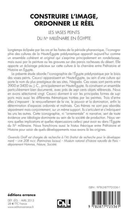 La présente étude aborde l'iconographie de l'Égypte prédynastique par le biais des vases peints. Ceux-ci apparaissent en Haute-Égypte, au sein d'une culture qui porte le nom du plus prestigieux de ses sites, Nagada. Ces vases sont peints entre 3 900 et 3 400 av. J.-C., principalement en Haute-Égypte. Ils constituent un ensemble particulièrement bien documenté, avec près de 700 objets référencés. Nous en avons sélectionné vingt. Ceux-ci donnent à voir les principales formes de supports mais aussi les différentes thématiques traitées par les peintres. Trois d'entre elles s'imposent : le renouvellement de la vie, le pouvoir et la domination, enfin la détermination d'espaces ordonnés et maîtrisés. Ces thèmes ne sont pas abordés séparément mais conjointement, sur un même support. Ils s'articulent et s'imbriquent l'un l'autre. Cette iconographie, ni "ornementale" ni narrative, sert de toute évidence une idéologie dominante au sein de la société de production. Nous verrons quelles implications et quelles répercussions celle-ci peut avoir eu dans l'Égypte du 4e millénaire. Nous franchirons aussi le hiatus théorique entre Préhistoire et Histoire pour saisir de quels développements nous avons là les origines.