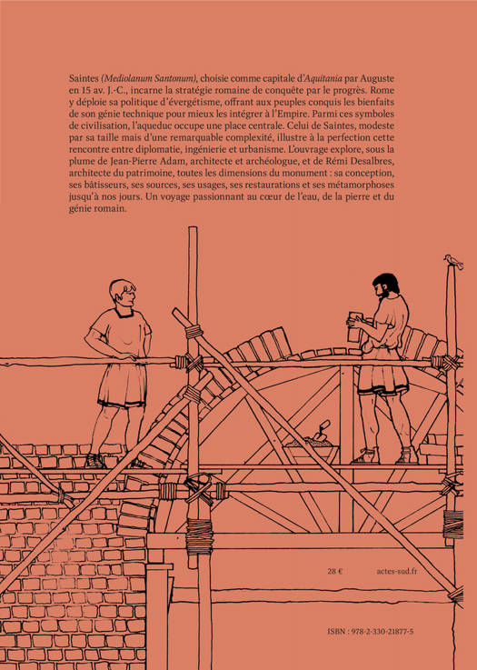 Saintes, Mediolanum Santonum, favorisée par Auguste, est choisie, vers 15 av. J.-C., comme capitale de la province d'Aquitaine. Comme pour les autres conquêtes, Rome utilise pour la Gaule la technique diplomatique d'évergétisme du pouvoir : offrir du progrès technique aux peuples conquis pour adoucir la conquête. Les aqueducs font partie de ces médiateurs, et celui de Saintes, modeste par sa taille mais pas par sa complexité, est un exemple représentatif de ces édifices qui fleurissent dans la Gaule du Ier siècle. Un bijou d'ingénierie étudié sous tous les angles dans cet ouvrage.