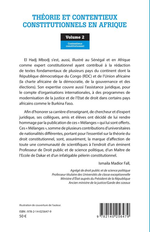 El Hadj Mbodj s'est illustré au Sénégal et en Afrique comme expert constitutionnel ayant contribué à la rédaction de textes fondamentaux de plusieurs pays du continent dont la République démocratique du Congo (RDC) et de l'Union africaine (la charte africaine de la démocratie, de la gouvernance et des élections). Afin d'honorer sa carrière d'enseignant, de chercheur et d'expert juridique, ses collègues, amis et élèves ont décidé de lui rendre hommage par la publication de ces « Mélanges », portant pour l'essentiel sur la théorie du droit constitutionnel.