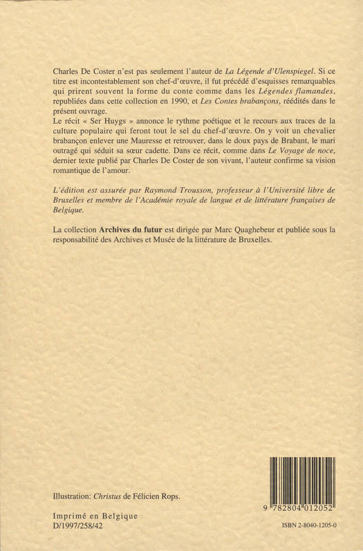 Le premier et le dernier livre publiés par Charles De Coster. Le premier esquisse l’invention de la langue archaïsante et merveilleuse de La Légende ; le dernier se livre à la tentation du récit réaliste et moraliste.