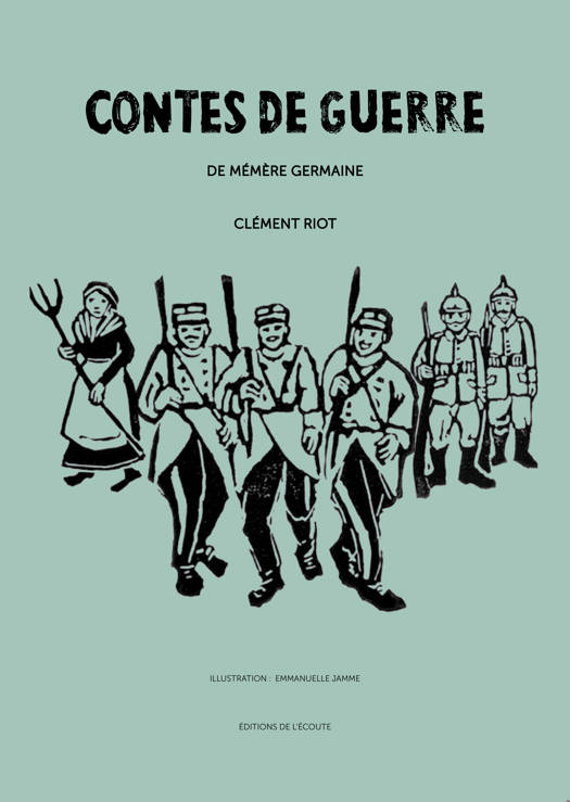 Six petits contes de guerre Les yeux d’une femme lucide, la voix d’une femme enjouée, le cœur d’une grand-mère qui raconte pour un, pour tous les enfants… et les adultes La découverte d’une carte postale adressée par Mémère Germaine, à mon grand-père Georges, fut l’étincelle qui réveilla des souvenirs enfouis : une relation privilégiée à ma grand-mère, ses récits de vie, contes ou petites histoires, anecdotes familiales et d’époque, autant de pépites prennent leur véritable valeur bien plus tard, avec la conscience du temps et de la vie. Ici, pas de collectage, de folklore, de leçon d’Histoire, seulement ce qu’il me fallait essayer de transmettre : émotion, pulsion de vie, présence, atmosphère et épaisseur humaines. Germaine étant une femme, pas non plus de récits de combats ni de vie des tranchées, mais, depuis un village en zone de combat, rien qu’un vécu de la Grande Guerre, comme on la nommera longtemps. Une femme comme tant d’autres, restée travailler aux champs et nourrir les bêtes… Cette voix à transmettre prit naturellement la forme de récits où tout est à la fois scrupuleusement vrai et honnêtement réinventé, associé à des références, citations et renvois à l’univers de l’enfance et des contes merveilleux, comptines, chanson populaire traditionnelle ou non, la littérature dite de genre, populaire ou enfantine, univers que Germaine aimait tant et que nous partagions. Entre récits de vie retravaillés et contes inventés à partir d’une ou plusieurs sources, dialectique entre création et restitution, mensonge et vérité : chacun pourra reconnaître autant de petits cailloux blancs grâce auxquels l’esprit du conte circule car, après tout, finalement, qu’est-ce que l’authentique ? Ne demandons surtout pas au conte son état civil et régalons-nous de ce qu’il offre de vivant et d’atemporel ! … À la lumière des guerres du XXI° siècle, certaines situations et répliques de ces contes de la guerre ouvrant le XX°, retrouvent une actualité particulière… les lecteurs jugeront… « Du temps où la guerre ne prélevait ses rations de chair et de sang que parmi la troupe ! Du temps où la guerre mettait un point d’honneur à laisser les civils de côté, comme si elle voulait que veuves et orphelins puissent savourer leur chagrin, en ce temps-là, montait au front une compagnie des nôtres… »