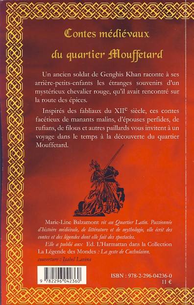 Un ancien soldat de Genghis Khan raconte à ses arrières petits-enfants les étranges souvenirs d'un mystérieux chevalier rouge, qu'il avait rencontré sur la route des épices. Inspirés des fabliaux du XIIe siècle, ces contes facétieux de manants malins, d'épouses perfides, de rufians, de filous et autres paillards vous invitent à un voyage dans le temps à la découverte du quartier Mouffetard.