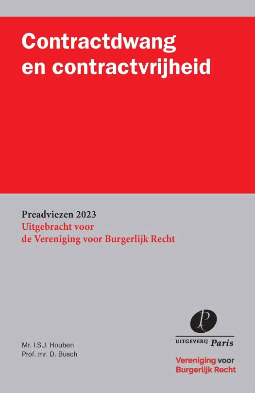 Het eerste preadvies van de hand van mr. I.S.J. Houben is getiteld ‘Contractdwang’ en gaat over de inbreuk op het meest wezenlijke aspect van contractvrijheid: de vrijheid om te beslissen óf een overeenkomst wordt aangegaan. Hoe wordt een dergelijke vergaande inbreuk op de contractvrijheid gerechtvaardigd?
