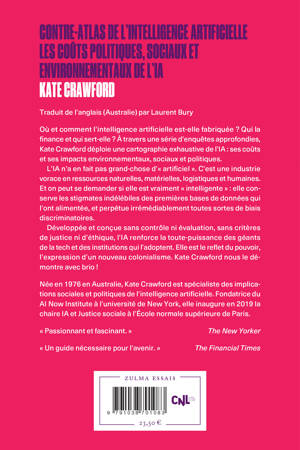 Où et comment l'intelligence artificielle est-elle fabriquée ? Qui la finance et qui sert-elle ? À travers une série d'enquêtes approfondies, Kate Crawford déploie une cartographie exhaustive de l'IA : ses coûts et ses impacts environnementaux, sociaux et politiques.