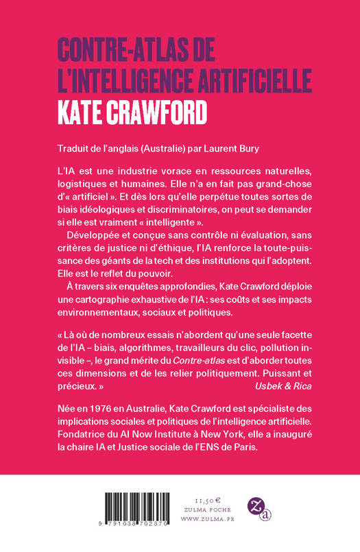 À travers six enquêtes approfondies, Kate Crawford déploie une cartographie exhaustive de l'IA : ses coûts et ses impacts environnementaux, sociaux et politiques.