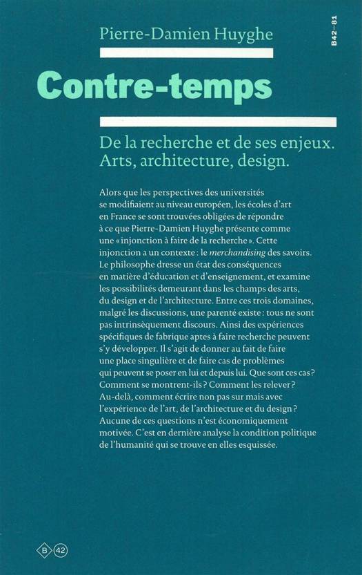 Alors que les perspectives des universités se modifiaient au niveau européen, les écoles d’art en France se sont trouvées obligées de répondre à ce que Pierre-Damien Huyghe présente comme une « injonction à faire de la recherche ». Cette injonction a un contexte : le merchandising des savoirs. Le philosophe dresse un état des conséquences en matière d’éducation et d’enseignement, et examine les possibilités demeurant dans les champs des arts, du design et de l’architecture. Entre ces trois domaines, malgré les discussions, une parenté existe : tous ne sont pas intrinsèquement discours. Ainsi des expériences spécifiques de fabrique aptes à faire recherche peuvent s’y développer. Il s’agit de donner au fait de faire une place singulière et de faire cas de problèmes qui peuvent se poser en lui et depuis lui. Que sont ces cas ? Comment se montrent-ils ? Comment les relever ? Au-delà, comment écrire non pas sur mais avec l’expérience de l’art, de l’architecture et du design ? Aucune de ces questions n’est économiquement motivée. C’est en dernière analyse la condition politique de l’humanité qui se trouve en elles esquissée.