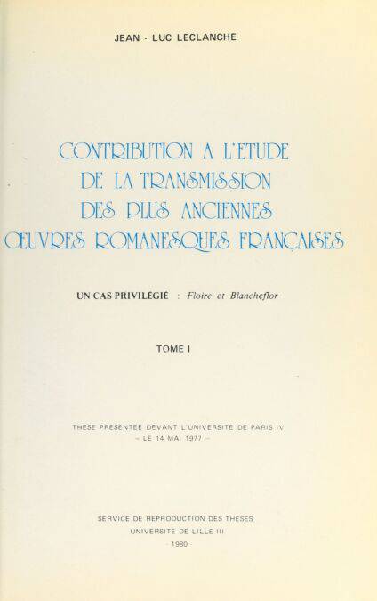 6. Contribution à l'étude de la transmission des plus anciennes œuvres romanesques françaises : un cas privilégié, "Floire et Blancheflor"