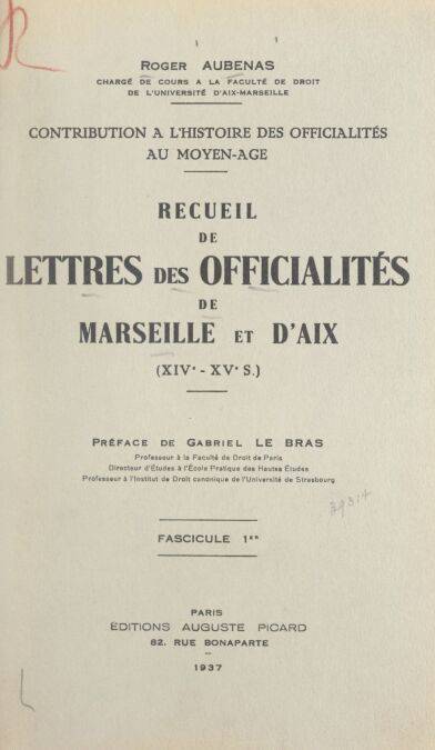 7. Contribution à l'histoire des officialités au Moyen Âge : recueil de lettres des officialités de Marseille et d'Aix, XIVe-XVe s. (1)