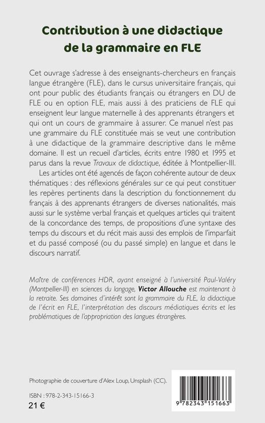 Ce manuel n’est pas une simple grammaire du FLE mais se veut une contribution à une didactique de la grammaire descriptive dans le même domaine. Il est constitué d’articles, écrits entre 1980 et 1995 parus dans la revue Travaux de didactique, éditée à Montpellier-III. Il s’adresse à des enseignants-chercheurs en français langue étrangère (FLE), dans le cursus universitaire français, mais aussi à des praticiens de FLE qui enseignent leur langue maternelle à des apprenants étrangers.