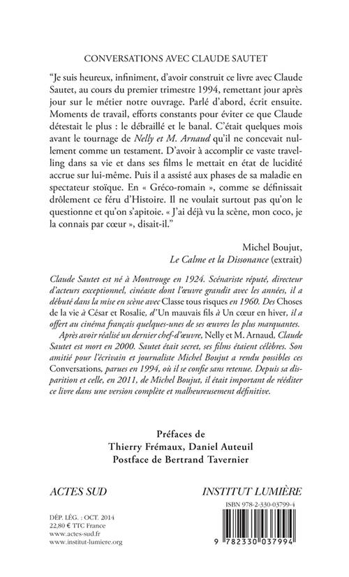 Sautet ou la vie saisie dans le détail : éclats furtifs et désastres intimes de couples qui se trouvent et se perdent derrière les vitres des cafés, pendant que la pluie tombe sur Paris-banlieue. Sautet, le peseur d'âmes, Sautet le luthier et le lutteur qui n'aime rien tant montrer que les combats douteux et les destins incertains. Sautet dont les histoires sont " simples " comme " les choses de la vie " et chez qui l'euphorie d'un moment se paie au prix fort : sortie de route ou réveil douloureux.
