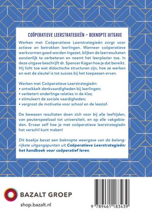 Gebruik je zijn werkwijze en de uitgave Coöperatieve Leerstrategieën, dan heb je met deze beknopte versie de hoofdpunten van de werkwijze en enkele structuren voor een snelle impuls op de actieve deelname en betrokkenheid, bij de hand.