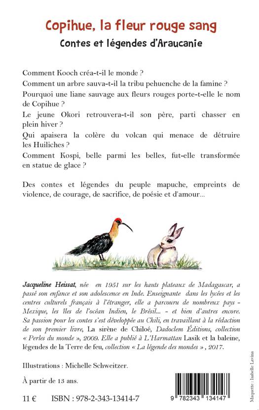 Des contes et légendes du peuple mapuche, empreints de violence, de courage, de sacrifice, de poésie et d'amour... Comment Kooch créa-t-il le monde ? Comment un arbre sauva-t-il la tribu pehuenche de la famine ? Pourquoi une liane sauvage aux fleurs rouges porte-t-elle le nom de Copihue ?