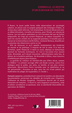 La guérilla du créateur ne méritait-elle pas d'être vécue, comme au théâtre ? Le présent ouvrage offre une étude cursive, suivie d'un dialogue entre le poète, ses amis, sa famille, et son plus coriace adversaire. Réconcilions Pierre Corneille avec sa méditation et sa vie personnelle ; écoutons ce que, sous les ors d'une poésie qui matérialise les pièges de la grandeur, il « brode ».
