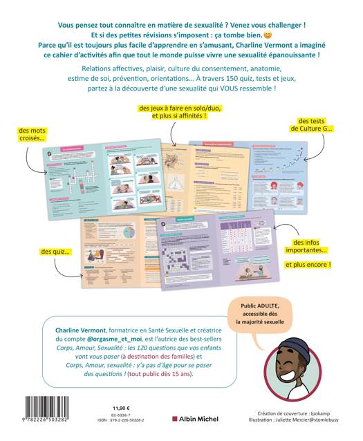 , Charline Vermont a imaginé ce cahier d'activités afin que tout le monde puisse vivre une sexualité épanouissante !Relations affectives, plaisir, culture du consentement, anatomie, estime de soi, prévention, orientations... À travers 150 quiz, tests et jeux, partez à la découverte d'une sexualité qui VOUS ressemble !