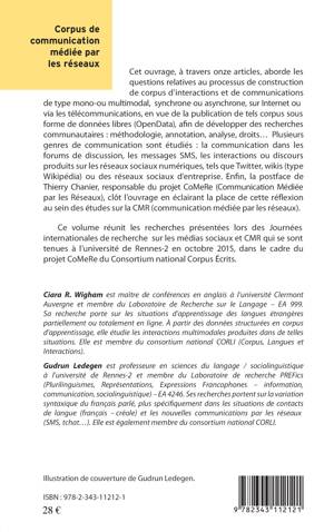 Cet ouvrage aborde les questions relatives au processus de construction de corpus d'interaction et de communications de type mono ou multimodal, synchrone ou asynchrone sur Internet ou via les télécommunications, en vue de la publication de tels corpus sous forme de données libres (OpenData), afin de développer des recherches communautaires : méthodologie, annotation, analyse, droits... Plusieurs genres de communication sont étudiés : la communication dans les forums de discussion, les messages SMS, les interactions ou discours sur les réseaux sociaux numériques, tels que Twitter, wikis, (type Wikipédia) ou des réseaux sociaux d'entreprise.
