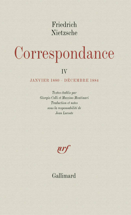 Le tome IV de la correspondance de Nietzsche couvre les années 1880-1884 : cinq années seulement, mais riches en crises et en métamorphoses. Désormais libre de toute attache universitaire, Nietzsche va connaître les plus douloureuses déceptions dans les rapports avec autrui, et les plus souveraines créations, avec Aurore, Le Gai Savoir et la figure nouvelle de Zarathoustra. À l'arrière-plan : lancinante, une douleur indéfinie, un mal-être physique et psychique permanent qui ne connaît que de rares rémissions (lors du "saint Janvier" de 1882) ; des relations de plus en plus difficiles avec sa mère et sa soeur Elisabeth ; et la quête souvent déçue d'un "lieu" propice à l'écriture, à Venise - auprès du compositeur Heinrich Köselitz, "Peter Gast", dont il admire et défend la musique -, à Gênes, dans l'anonymat d'un grand port, à Nice, ville un peu trop française, et, en Engadine, "présent inattendu", qu'il découvre alors, séjour fécond de ses étés. Dans cette errance un peu contrainte, entre Suisse et Italie, Nietzsche formule ses pensées les plus secrètes : son affinité avec Spinoza, le défi de l'éternel retour, l'annonce du surhomme, la critique du "dernier homme". Mais à qui confier ces perspectives nouvelles ? Vers quelle petite élite se tourner ? C'est le vieux rêve de Nietzsche. En mai 1882 a lieu la fatale rencontre avec Lou von Salomé à Rome, et se forme le projet naïf d'une "Trinité" avec le froid Paul Rée. Cet épisode bien documenté sera un échec désastreux, qui va conduire Nietzsche à rompre avec sa famille et ses amis wagnériens et le condamner à une solitude de plus en plus irrémédiable. Si les lettres qui témoignent de cet épisode pathétique révèlent les premiers craquements de sa personnalité, elles sont aussi d'une densité, d'une élégance d'écriture et d'une intensité humaine et intellectuelle qui en font sans conteste une des plus bouleversantes correspondances de langue allemande.