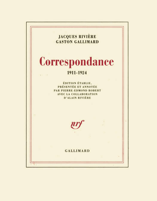 La correspondance entre Jacques Rivière et Gaston Gallimard est l'histoire d'une amitié aussi improbable que surprenante. Elle commence avec leur rencontre à La N.R.F. N.R.F., en 1911 : Jacques Rivière venait d'être nommé secrétaire de la revue (il en sera le directeur de 1919 à 1925) et Gaston Gallimard cofondateur des Éditions de la N.R.F. (il en deviendra le gérant, puis le directeur). L'affection s'y exprime sans ambages. Ni la séparation due à la guerre, pendant laquelle la revue cesse de paraître, ni les conflits avec ses fondateurs lors de sa reparution en 1919 ne l'interrompent. Elle s'achève avec la dernière lettre de Rivière, le 13 septembre 1924, cinq mois avant sa mort, le 14 février 1925. Les lettres de Jacques Rivière et de Gaston Gallimard nous font témoins des origines et du développement de La N.R.F. et de ses Éditions. Elles résument la brève carrière de Rivière, romancier, critique et essayiste, et les débuts de celle de Gallimard dans l'édition. Elles sont peut-être plus précieuses encore quand elles éclairent la personnalité de deux hommes venus d'univers si éloignés qu'ils peuvent paraître antinomiques, mais qui, tous deux, font coïncider leur entreprise avec ce que la littérature de leur temps compte de meilleur.