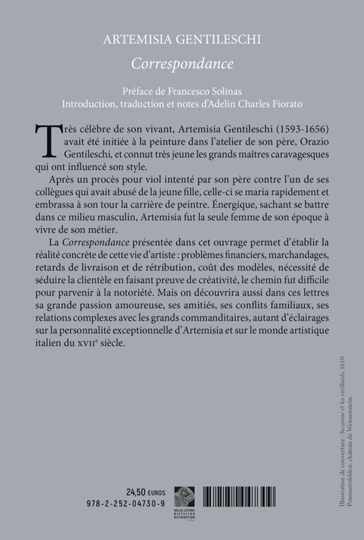 Tres celebre de son vivant, Artemisia Gentileschi (1593-1656) avait ete initiee a la peinture dans l'atelier de son pere, Orazio Gentileschi, et connut tres jeune les grands maitres caravagesques qui ont influence son style. Apres un proces pour viol intente par son pere contre l'un de sescollegues qui avait abuse de la jeune fille, celle-ci se maria rapidement et embrassa a son tour la carriere de peintre. Energique, sachant se battre dans ce milieu masculin, Artemisia fut la seule femme de son epoque a vivre de son metier. La Correspondance presentee dans cet ouvrage permet d'etablir larealite concrete de cette vie d'artiste: problemes financiers, marchandages, retards de livraison et de retribution, cout des modeles, necessite de seduire la clientele en faisant preuve de creativite, le chemin fut difficile pour parvenir a la notoriete. Mais on decouvrira aussi dans ces lettres sa grande passion amoureuse, ses amities, ses conflits familiaux, ses relations complexes avec les grands commanditaires, autant d'eclairages sur la personnalite exceptionnelle d'Artemisia et sur le monde artistique italien du XVIIe siecle.