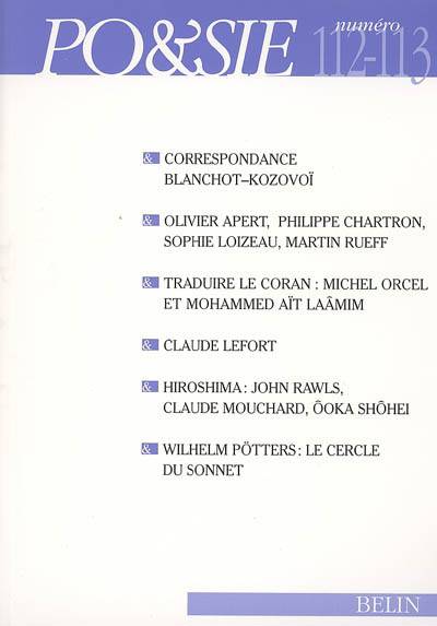 Blanchot : Lettres inédites - Correspondance : Blanchot–Kozovoï - Olivier Apert Philippe Chartron Sophie Loizeau Martin Rueff - Traduire le Coran : Michel Orcel et Mohammed Aït Laâmim - Claude Lefort - Hiroshima: John Rawls Claude Mouchard ôoka Shôhei - Wilhelm Pötters: le cercle du sonnet