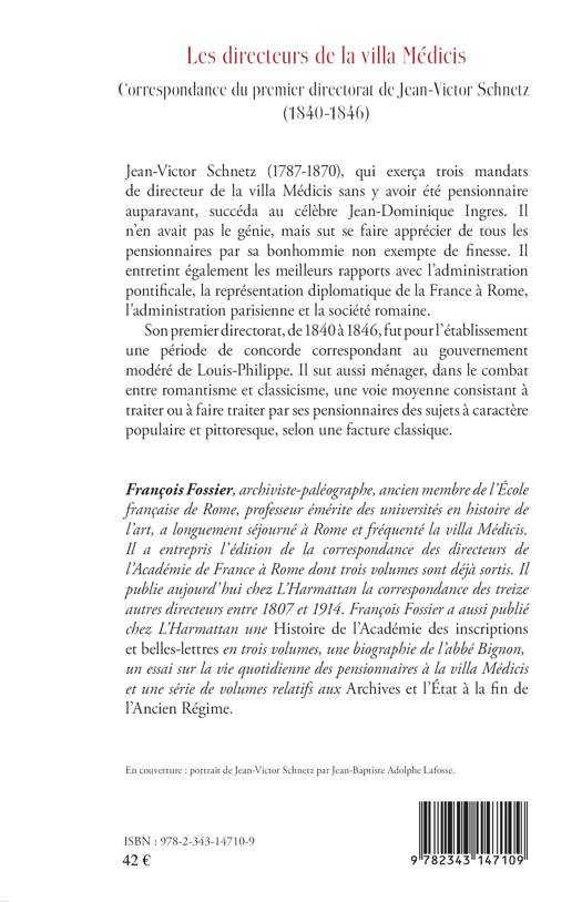 Jean-Victor Schnetz (1787-1870), qui exerça trois mandats de directeur de la villa Médicis sans y avoir été pensionnaire auparavant, succéda au célèbre Jean-Dominique Ingres. Son premier directorat, de 1840 à 1846, fut pour l'établissement une période de concorde correspondant au gouvernement modéré de Louis-Philippe. Il sut ménager, dans le combat entre romantisme et classicisme, une voie moyenne consistant à faire traiter par ses pensionnaires des sujets à caractère populaire, selon une facture classique.