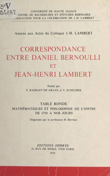 6. Correspondance entre Daniel Bernoulli et Jean-Henri Lambert