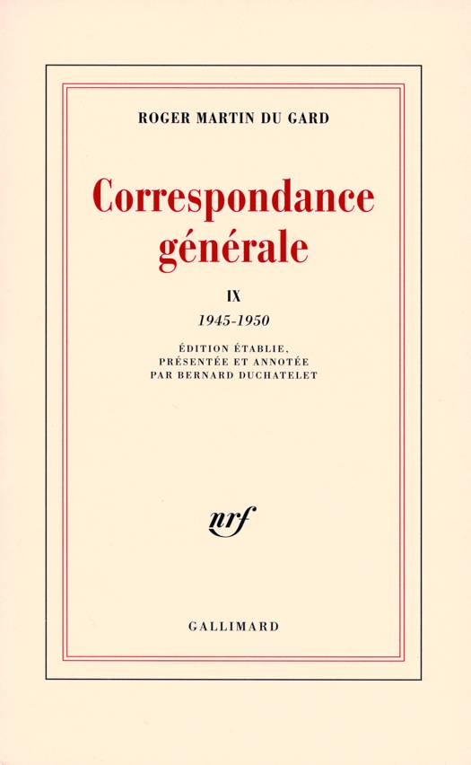 La guerre se termine. Roger Martin du Gard quitte Figeac pour regagner Nice, peu désireux de revenir à Paris et de regagner le Tertre ; il attend que les passions s'apaisent. Il s'y décide enfin. Attentif aux mouvements de pensée et au renouveau qui s'annonce, inquiet de voir l'état révolutionnaire de la France, il résiste aux pressions, redoute les conflits qui se préparent et refuse de "se jeter dans la mêlée". Il prend vite conscience qu'il est désormais un homme du passé. Il "reste d'un temps sceptique, et se défiant de toutes les certitudes". Il refuse l'"esprit partisan" et rejette la "littérature engagée" que prône désormais Sartre. Malgré les difficultés, il veut garder sa liberté et rester fidèle à soi-même. Lucide, il est l'homme d'entre les deux guerres, ""spectateur passif", mais spectateur". "Dépassé par l'Histoire, je me survis", reconnaît-il. "Entre un présent hostile et dénudé, et le passé qui m'offrait son refuge, j'ai lâchement opté pour le passé, et accepté d'être un "anachronisme"." Il accepte ses limites. Sachant qu'il ne peut parler à la génération nouvelle, il reprend son travail et réfléchit à l'oeuvre posthume commencée durant la guerre. Il est soucieux d'"achever harmonieusement sa courbe". En novembre 1949, il perd brutalement sa femme. Une page se tourne. Malgré le travail qui le délivre de sa souffrance, en 1950 il se sent peu à peu démoralisé ; aux ennuis de santé s'ajoutent les nouvelles du monde : Roger Martin du Gard est persuadé de l'imminence d'une conflagration. Le ton de ses lettres se colore parfois de cette angoisse de l'avenir.