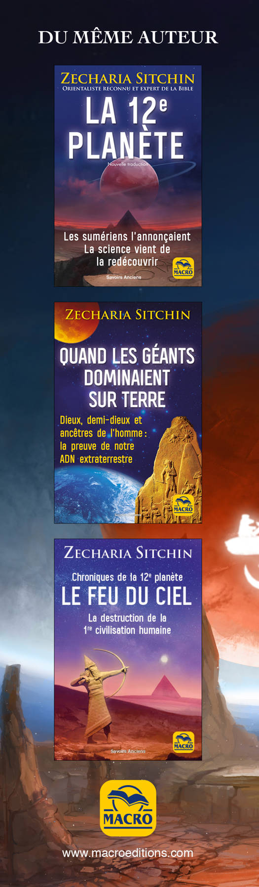 Zecharia Sitchin nous a quittés en 2010, après plus de trente ans de recherches approfondies autour d’une unique découverte : la mythologie sumérienne fut l’héritière d’un authentique savoir scientifique et historique transmis par des êtres qui ne sont pas nés sur la Terre. Les textes les nomment Anunnaki (« Ceux qui du Ciel sur Terre vinrent »). Sans état d’âme, ils exploitèrent la planète Terre et créèrent un esclave à tout faire ’homme et sa compagne. Voilà la trame révélée par les textes et les épopées dont Zecharia Sitchin a exploré et validé les moindres détails en une lecture toujours « interdite » : l’homme sur terre est-il prêt à se confronter à « sa » vérité bouleversante ?