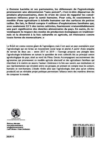 Présentée comme une réponse au double défi de la faim dans le monde et du réchauffement climatique, l’agroécologie est définie à la fois comme une science, une pratique et un mouvement. Au Brésil, pays pionnier en la matière, l’ensemble des producteurs familiaux qui résistent au modèle dominant de l’agriculture de firme (agronegócio) se regroupent aujourd’hui sous cette bannière. L’ouvrage propose une ethnographie comparée de trois collectifs agroécologiques à partir d’une enquête de vingt mois dans le nord de l’État Minas Gerais, entre 2017 et 2019. En suivant ainsi trois collectifs, à la fois distincts mais reliés entre eux, on découvre que l’agroécologie offre un exemple de cosmopolitique en action, face au modèle dominant de l’agronégoce.Sébastien Carcelle est docteur en anthropologie sociale de l’EHESS. Il est enseignant-chercheur à l’Université Catholique de Lille et rattaché au Laboratoire d’Anthropologie Sociale. Agronome, il a travaillé en Argentine et au Brésil.