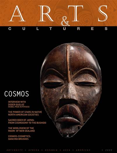 The final sanctuary, the supreme consolation, is to know that we belong to the cosmos, that we are part of the order of things. Gustave Flaubert We are always amazed by the images of galaxies that space exploration captures, sent to us via satellite or telescope, allowing us to dream. Among the many things we admire in these pictures are the planet's beauty, the delicacy of its atmosphere and its fragility within the universe. Today we are able to see, thanks to the superpowerful James Webb Space Telescope, spectacular images of galaxies formed more than 13 billion years ago. We humans have always been fascinated by the cosmos and have always wondered about our place in it. Our ancestors tried to decrypt its mysteries, reproducing their ideas, and some of these have survived to this day. Representations of these perceptions vary according to the era, geographical area, culture and cosmological knowledge of each civilisation. They can take different forms, such as diagrams, drawings, stories, maps, myths, and scientific or religious theories. Every culture has a fascinating cosmogony connected to a wide diversity of myths. The word cosmos (from the Greek kosmos) literally means order and adornment ; cosmetic has the same root. All cosmogonies share an attempt to comprehend and represent order and, ultimately, beauty. The origin of the world is often the result of conflict between opposing forces: order and chaos, beauty and ugliness, light and darkness. In the pages that follow, you will discover articles written by archaeologists, anthropologists, art historians and journalists, who each reveal a singular understanding of the universe, present and past, among certain populations across the world. We can only ever catch glimpses of the heavens, and likewise this issue of Arts & Cultures presents just a small portion of how some of the world see, or have seen, the skies that are with us all. Editorial by Laurence Mattet