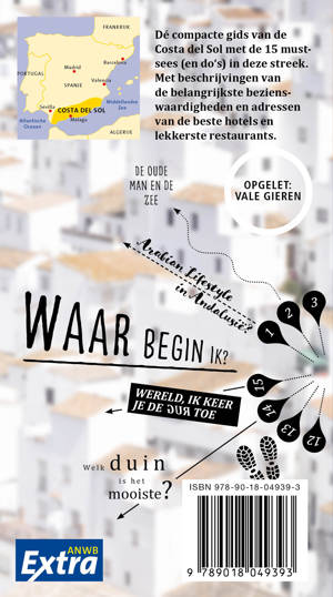 Ontdek Costa del Sol met de compleet vernieuwde reisgids ANWB Extra Costa del Sol! Door een combinatie van een heerlijk klimaat (korte winters en niet te hete zomers), zon, kust en in het achterland de witte dorpen is de Costa del Sol de perfecte bestemming voor een lekkere zonvakantie.