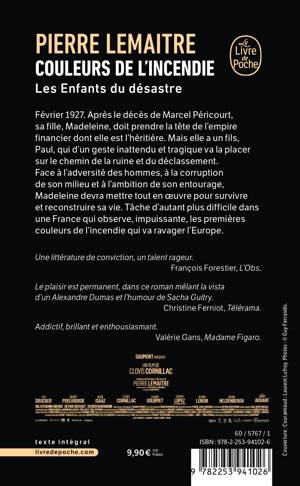 Face à l'adversité des hommes, à la corruption de son milieu et à l'ambition de son entourage, Madeleine devra mettre tout en œuvre pour survivre et reconstruire sa vie. Tâche d'autant plus difficile dans une France qui observe, impuissante, les premières couleurs de l'incendie qui va ravager l'Europe.