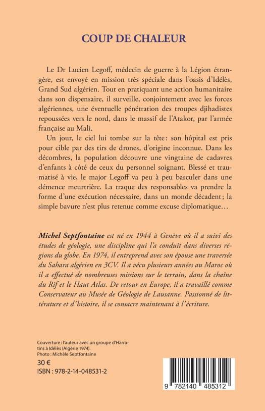 Le Dr Lucien Legoff, médecin de guerre à la Légion étrangère, est envoyé en mission très spéciale dans l’oasis d’Idélès, Grand Sud algérien. Tout en pratiquant une action humanitaire dans son dispensaire, il surveille, conjointement avec les forces algériennes, une éventuelle pénétration des troupes djihadistes repoussées vers le nord, dans le massif de l’Atakor, par l’armée française au Mali.  Un jour, le ciel lui tombe sur la tête : son hôpital est pris pour cible par des tirs de drones, d’origine inconnue. Dans les décombres, la population découvre une vingtaine de cadavres d’enfants à côté de ceux du personnel soignant. Blessé et traumatisé à vie, le major Legoff va peu à peu basculer dans une démence meurtrière. La traque des responsables va prendre la forme d’une exécution nécessaire, dans un monde décadent ; la simple bavure n’est plus retenue comme excuse diplomatique…