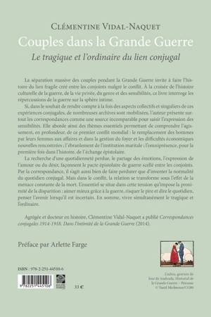 English summary: The present text offers an innovative examination of the effects of war on intimate relations. At the intersection of gender, cultural, and even military history, this study explores the private lives of couples during the First World War, through their letters and archival documents, offering a seldom seen intimate history of the War and of the relationship between the battlefront and the home front. French description: A la croisee de l'histoire culturelle de la guerre, de l'histoire de la vie privee, du genre et des sensibilites, ce livre propose une histoire de l'intime en guerre, une histoire du maintien des relations entre le front et l'arriere. Cet ouvrage interroge les repercussions de la guerre sur la sphere intime, en prenant les couples francais, maries ou non, comme objet d'etude. Clementine Vidal-Naquet propose une lecture du lien conjugal a l'epreuve de la separation qu'impose la Grande Guerre. Elle analyse une experience eminemment intime mais largement partagee puisqu'en France, au moins 5 millions de couples vivent la separation au cours des quatre annees de guerre. Si, dans le souhait de rendre compte a la fois des aspects collectifs et singuliers de ces experiences conjugales, de nombreuses archives sont mobilisees, l'auteur presente surtout les correspondances comme une source incomparable pour approcher l'expression des sensibilites. A la croisee de l'histoire culturelle de la guerre, de l'histoire de la vie privee, du genre et des sensibilites, ce livre propose une histoire de l'intime en guerre, une histoire du maintien des relations entre le front et l'arriere. Il evoque de nombreux themes essentiels pour comprendre ce premier conflit mondial: l'importance et le caractere massif, pour la premiere fois dans l'histoire, de l'echange epistolaire pendant la guerre, le remplacement des hommes par leurs femmes aux affaires et dans la gestion du foyer, l'expression du desir et de l'amour pendant le conflit, l'omnipresence de la mort, le deuil de guerre. La recherche d'une quotidiennete perdue, le partage des emotions, l'expression de l'amour ou du desir, faconnent le pacte epistolaire de guerre scelle entre les conjoints. Par la correspondance, il s'agit aussi bien de faire perdurer que d'inventer la normalite du quotidien conjugal. Mais dans le conflit, la relation se transforme sous l'effet de la menace omnipresente de la mort. L'essentiel se situe dans cette tension qu'impose la proximite de la mort et de la disparition: aimer mieux grace a la guerre, risquer le pire et dire le quotidien, penser l'avenir lorsqu'il est incertain. En somme, vivre simultanement le tragique et l'ordinaire. Agregee et docteur en histoire, Clementine Vidal-Naquet a publie Correspondances Conjugales. Dans l'intimite de la Grande Guerre, Paris, Robert Laffont, collection Bouquins, 2014. A retenir Centenaire de 1914-1918