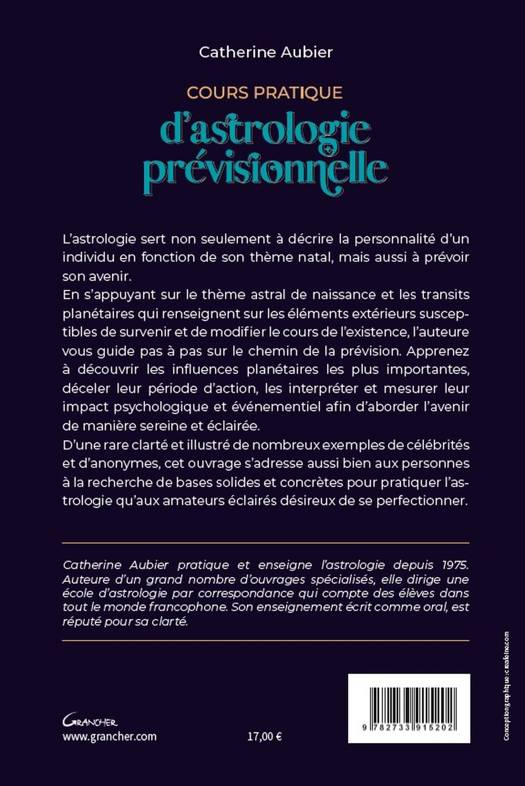 L’astrologie sert non seulement à décrire la personnalité d’un individu en fonction de son signe, mais aussi à prévoir son avenir. En s’appuyant sur le thème astral de naissance et les transits planétaires qui renseignent sur les éléments extérieurs susceptibles de survenir et de modifier le cours de l’existence, l’auteure vous guide pas à pas sur le chemin de la prévision. Apprenez à découvrir les influences planétaires les plus importantes, déceler leur période d’action, les interpréter et mesurer leur impact psychologique et événementiel afin d’aborder l’avenir de manière sereine et éclairée. D'une rare clarté et illustré de nombreux exemples de célébrités et d’anonymes, cet ouvrage s'adresse aussi bien aux personnes à la recherche de bases solides et concrètes pour pratiquer l’astrologie qu'aux amateurs éclairés désireux de se perfectionner.