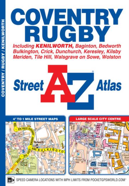 This A-Z map of Coventry and Rugby features 45 pages of continuous street mapping extending to: -Bedworth-Bulkington-Keresley-Allesley-Baginton-Coventry Airport-Kenilworth-Wolston-Long Lawford-Clifton upon Dunsmore-Kilsby-Crick-DunchurchAlso included are inset maps of Meriden, Brownsover and Thurlaston and a large scale city centre map of Coventry.Postcode districts, one-way streets and safety camera locations with speed limits are also featured on the mapping.The index section lists streets; selected flats, walkways and places of interest; place, area and station names; hospitals and hospices covered by this atlas.